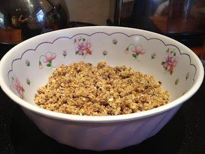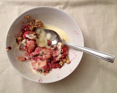 I made this for my parents today, who visited. They loved it. When it's ready, leave to cool slightly for 5 minutes & then make or buy some really good quality custard and pour lashing of it over the crumble & enjoy. It's a perfect way to warm up, now there is a definitive chill* in the air. Curl up on the sofa & tuck in.