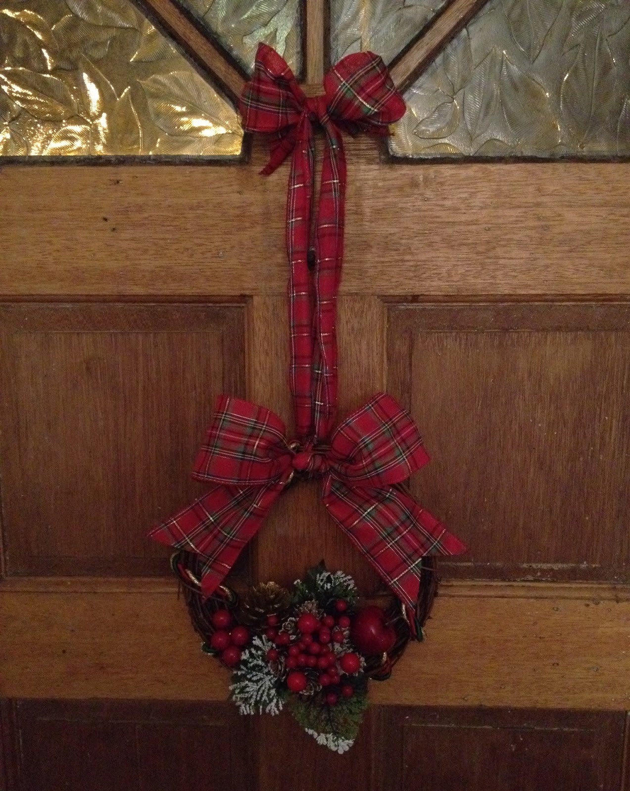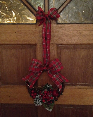 Some tartan ribbon or any thick ribbon you have, be creative & choose something that will fit in with your choice of colour theme for Christmas. I am using wired ribbon here and you will need 2 Metres for the full effect, but you can get away with using enough for a bow and then using string to hang it. I found both these ribbons for around a pound. One is from The Works & the other from eBay.
