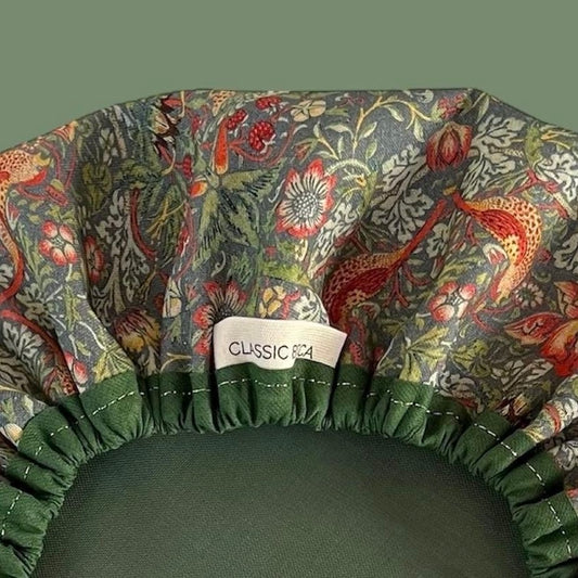 Shower Cap | Luxury Green William Morris Strawberry Thief