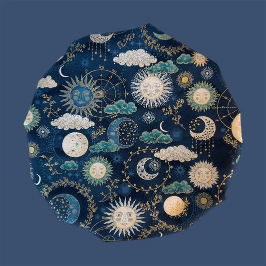 Shower Cap | Blue & Gold Sun Moon & Stars
